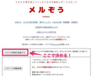 メルぞうにレポート掲載を出す前にこの登録フォームを整えておく必要があります。