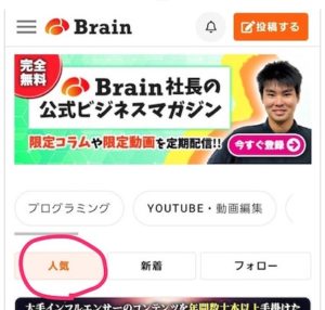 まずは『Brain』とはどういったサービスなのか簡単に説明すると、自分が経験した『知識』や『ノウハウ』などを教材化して販売しているサービスなんですね。