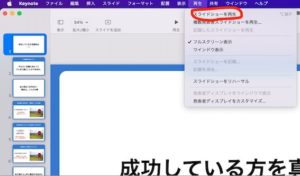 僕の場合はmacを利用しているので、『Keynote』のスライドショーの再生をクリックしてフルスクリーンの状態にしてデスクトップ録画しています。